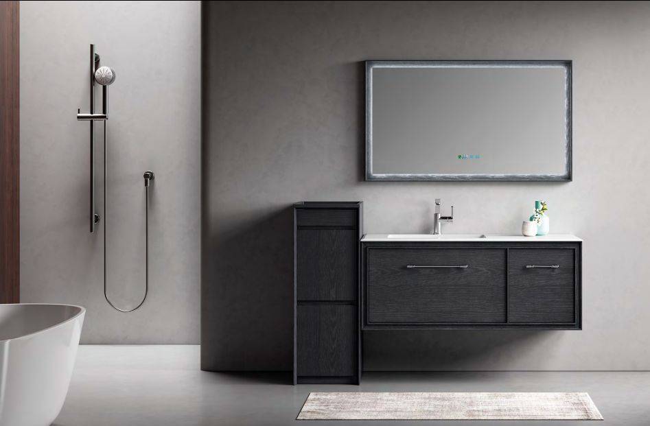 港式风的精髓就是利落又有质感!这款灰调白蜡木柜体搭配单条长拉手,极简到极致的设计适配小户型。岩板一体盆 + 圆角智能镜,既解决了卫生死角问题,又自带港式的冷调高级感,70-120cm 多尺寸可选,租房党也能轻松 get 同款。